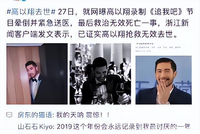 有命挣钱没命花 2019年11月27日,高以翔在录制综艺《追我吧》时,突然在奔跑过程中倒地不起。 当时已是深夜,连续高强度录制让他早已疲惫不堪, 倒地后他还挣扎着说了句“我不行了”,就彻底失去了意识。