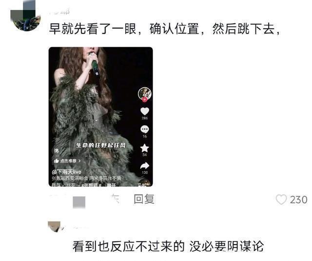更刻薄的言论直指她在消费“敬业人设”。 但更多现场观众站出来反驳:“当时灯光特别暗,她是真没注意,能及时调整姿势已经很不容易了,这要是头着地后果不堪设想。”